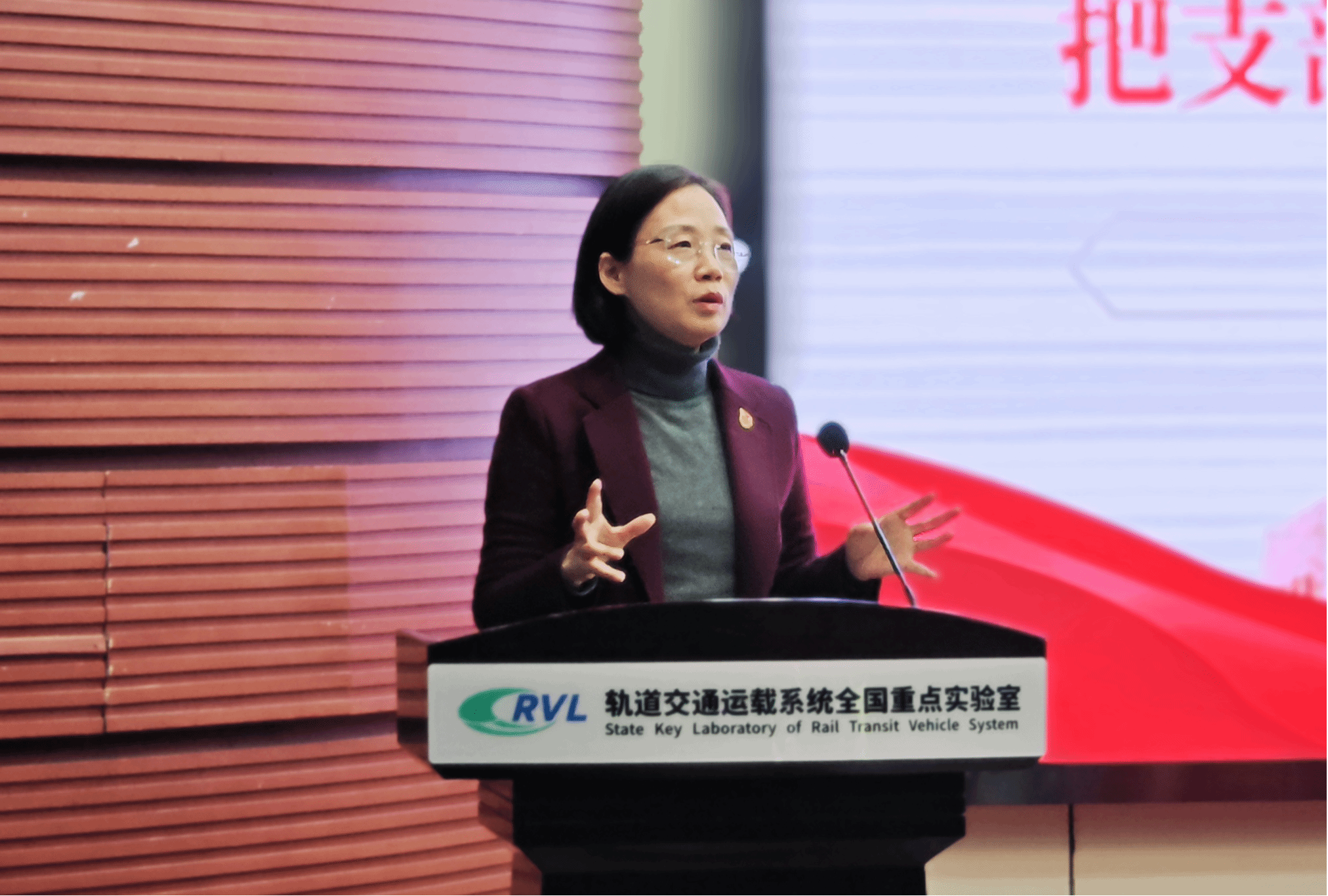 研究生党员代表讲党课,并参加列车与线路研究所2024级硕士研究生党支部“领航先锋‘旗帜小组’”学习实践活动。活动由实验室党委副书记王霞主持,学生党支部委员代表、2024年第一期新发展党员及列线所2024级硕士党支部全体党员参加。