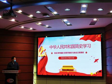 11月4日,新型轨道交通技术研究所师生共建党支部在牵引红楼218会议室进行中华人民共和国简史学习,党支部48名党员参加。
