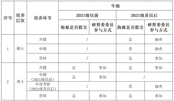 为进一步提高研究生培养质量,实验室于2023年9月修订《嗨皮漫画 研究生培养过程督导工作实施细则(试行)》(见附件1)。修订后各培养节点材料提交简表如下: