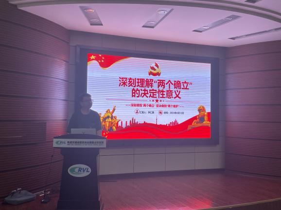 在主题教育环节,李仁辉同志围绕“两个确立”开展学习研讨,他解释“两个确立”是历史和人民的选择,带领同学们深刻领悟“两个确立”的决定性意义,呼吁同学们把“两个确立”融入血脉、付诸行动。他讲道:“中国共产党第十九届中央委员会第六次全体会议公报指出,党确立习近平同志党中央的核心、全党的核心地位,确立习近平新时代中国特色社会主义思想的指导地位。”