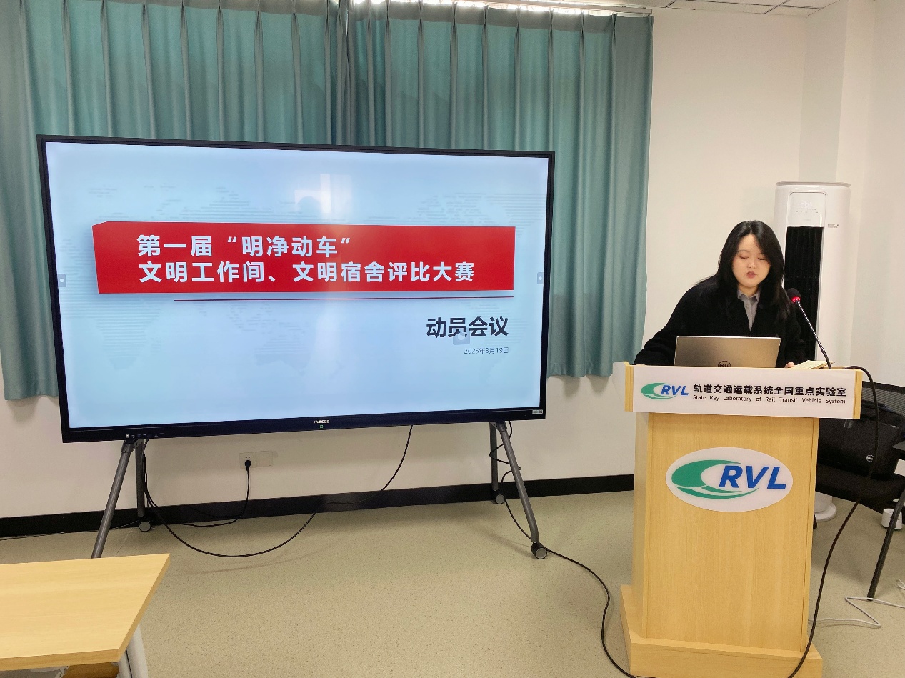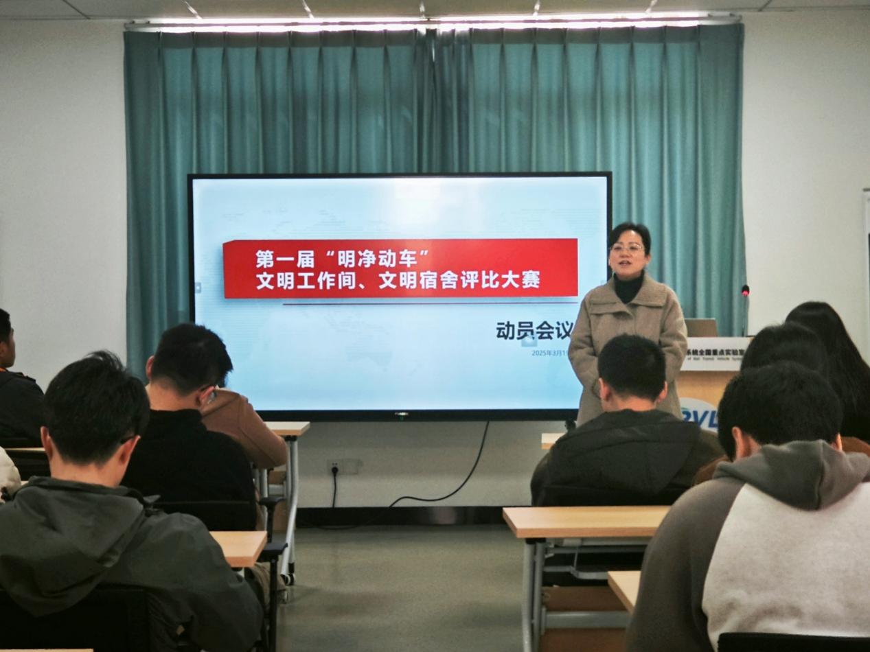 于B1楼209会议室召开第一届“明净动车”文明工作间、文明宿舍评比大赛动员会议。实验室各研究生科研工作间学生负责人、2024级研究生班级生活委员全员参会,实验室党委副书记王霞、团委书记余卉、辅导员成恬逸出席会议,学工组申宇担任会议主持。