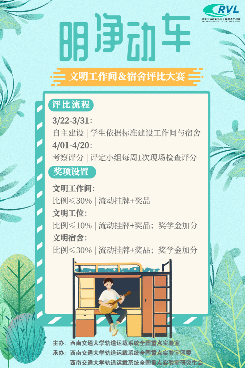 此次“明净动车”文明工作间、文明宿舍评比大赛,以实验室原有品牌—“明净工作间”评选活动为基础,增加了文明宿舍的评选环节,聚焦实验室学生工作间与宿舍的双重空间建设。实验室将秉持“以评促建”原则,着力推动学生自我管理、自我服务、自我教育、自我监督体系建设,旨在为广大学生打造安全有序、文明和谐、整洁美观的科研与生活环境,助力学生全面成长成才。