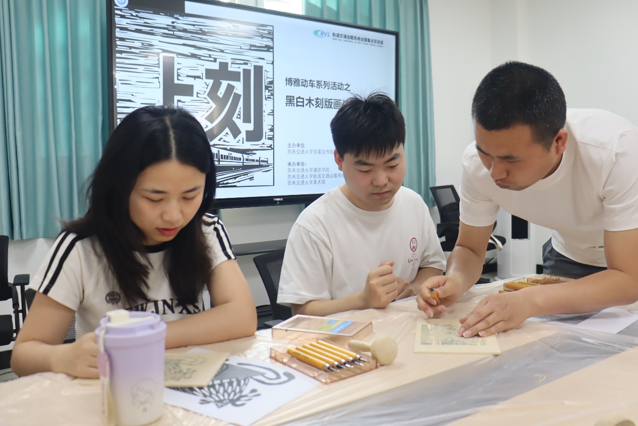 活动结束后,实验室2024级硕士研究生王馨悦说:“整场活动非常有意思!完成自己作品的时候也非常有成就感!这次活动不仅能让我们在科研之余放松身心,还能深入体验木刻版画这一传统艺术的制作过程,有助于我们实现德智体美劳的全面发展。”