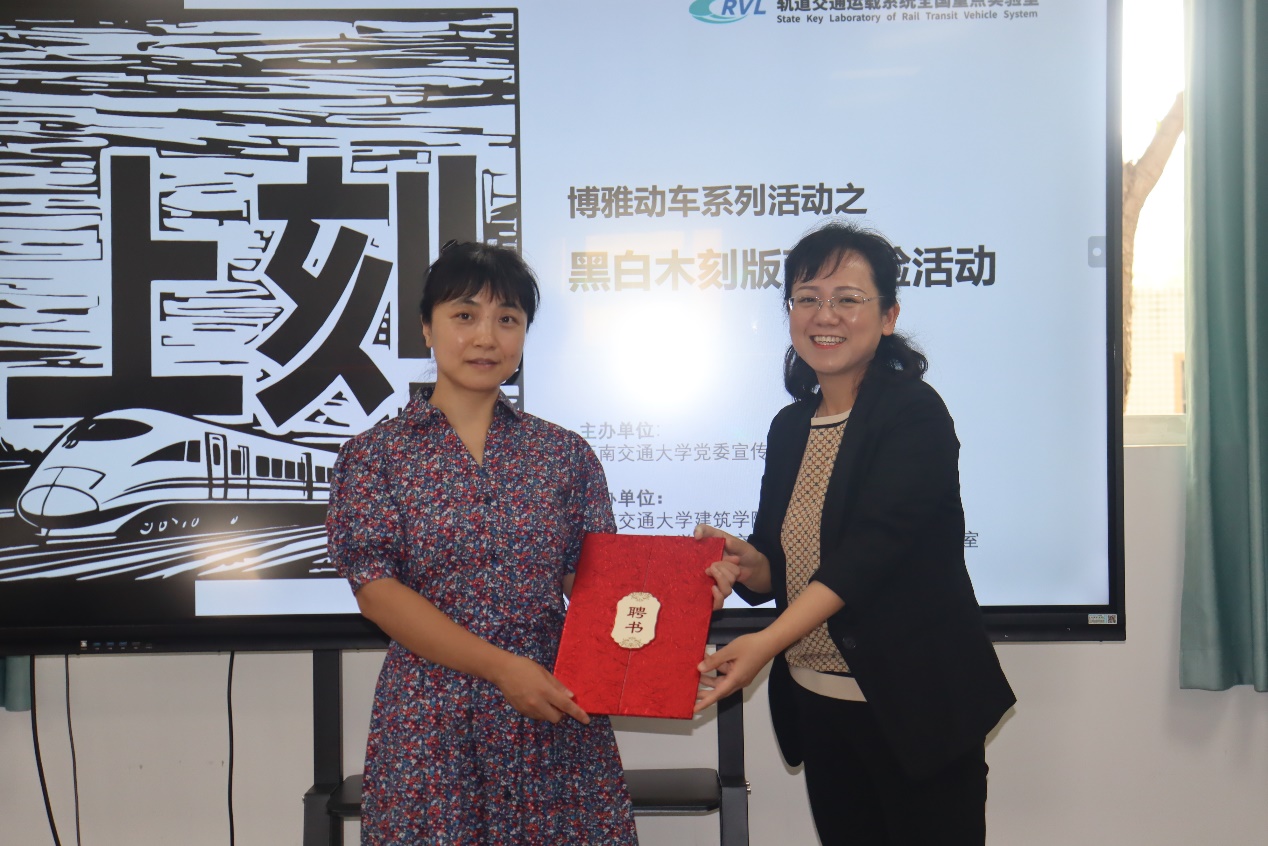 活动伊始,王霞副书记代表实验室向朱丽娅老师颁发了“美誉导师”聘书,并感谢朱老师为实验室美育工作给予的大力支持。随后,建筑学院韩君伟老师致辞,他表示:“本次活动的开展,有利于实验室同学在科研学习之余,发现美、欣赏美,并在亲身体验和实践中创造美,从而实现人的全面发展。”