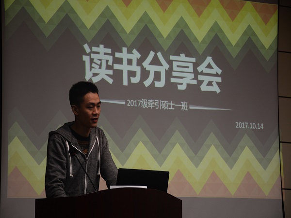 1015日,牵引动力国家重点实验室2017级硕士一班全体同学欢聚一堂,在第一次班级合影之后,在牵引红楼218举办了一场极具意义的读书分享会。上午九点,班长曾厚铭登上讲台宣布读书分享会开始。曾厚铭表示,读书是我们增长知识开拓视野的一个非常重要的途径,而且多读书可以有效增长我们的写作水平,这对于我们研究生的论文写作来说是至关重要的,要多读书,读好书,并且要积极地将自己读到的好的作品,分享给周围的同学。随后曾厚铭率先向同学们分享了自己的读书心得,并且向同学们介绍了鲁迅先生的作品风格以及他的一些感悟。