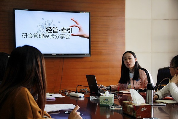接下来,应颖同学从组织机构,考核管理以及活动开展等方面,介绍了牵引研会的现状。经管研会主席蔡玉叶同学从组织结构,活动介绍等方面介绍了经管研会的现状,特别是以迎新活动为例,详细介绍了整个活动举办的全过程,包括人员如何安排,任务如何分配和落实等。