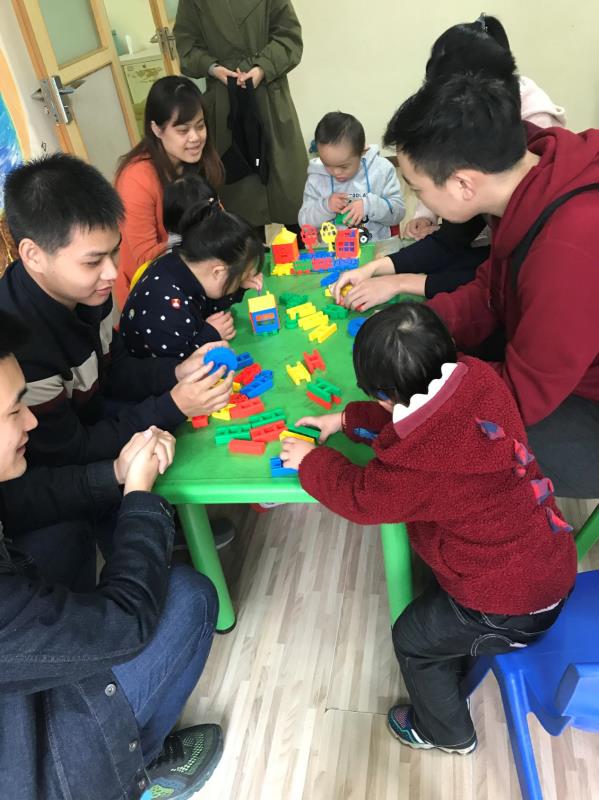 活动中,大家一同陪伴唐宝们进行了游戏互动,进一步走近和了解唐氏征人群。孩子们都很欢呼雀跃,和哥哥姐姐们一起搭积木、玩乒乓球、自拍,度过了美好快乐的半天。