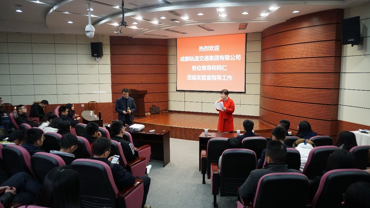 为进一步加强校企沟通和交流,2018年12月13日上午,成都轨道交通集团代表团对西南交大牵引动力国家重点实验室进行参观访问,本次参观访问由牵引团委书记余卉接待。