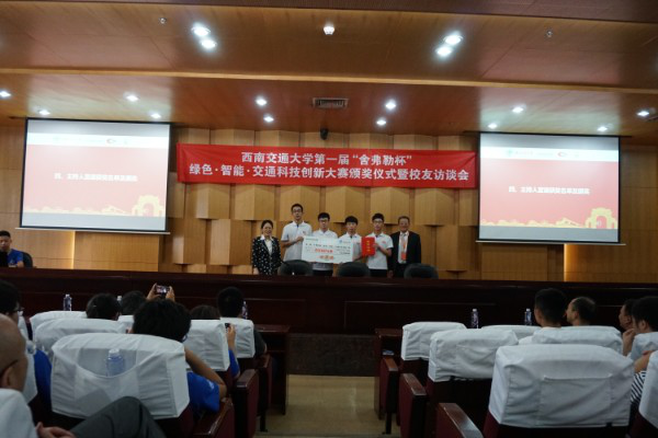 第一届"舍弗勒杯"绿色·智能·交通科技创新大赛颁奖仪式暨校友访谈会在犀浦校区二号报告厅举行。舍弗勒大中华区首席技术官刘泳,嗨皮漫画