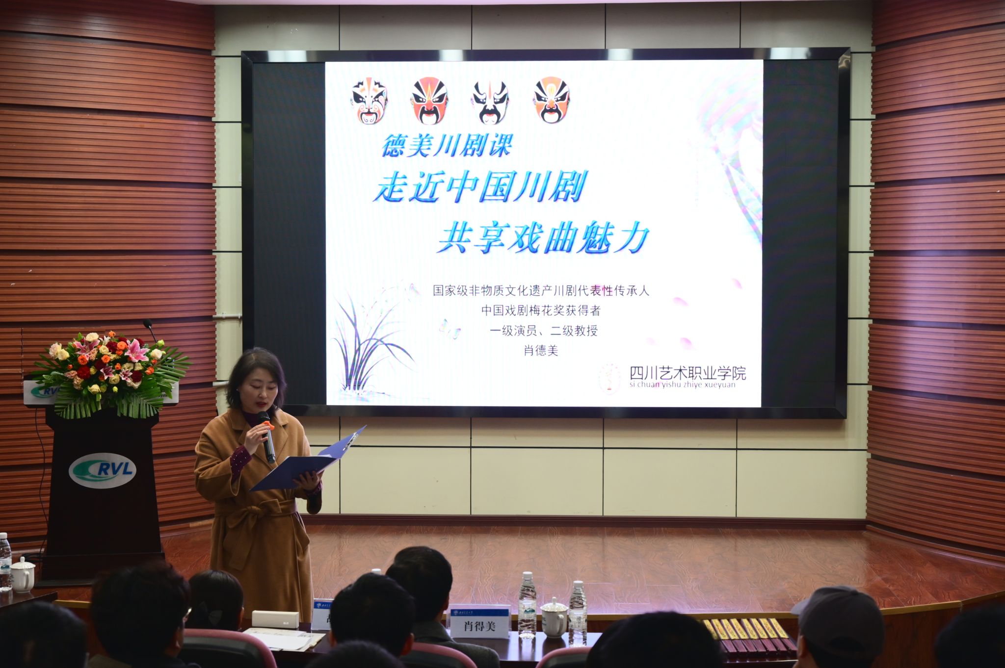 联合人文学院在A1楼218会议室共同举办“博雅动车”融通共育美育系列活动之川剧体验专场。活动特邀国家级非物质文化遗产川剧代表性传承人、梅花奖获得者、一级演员肖得美教授担任主讲嘉宾,人文学院副院长胡红,实验室团委书记余卉,研究员杨冰、辅导员盛希雅、申宇等老师及众多研究生参与本次活动。