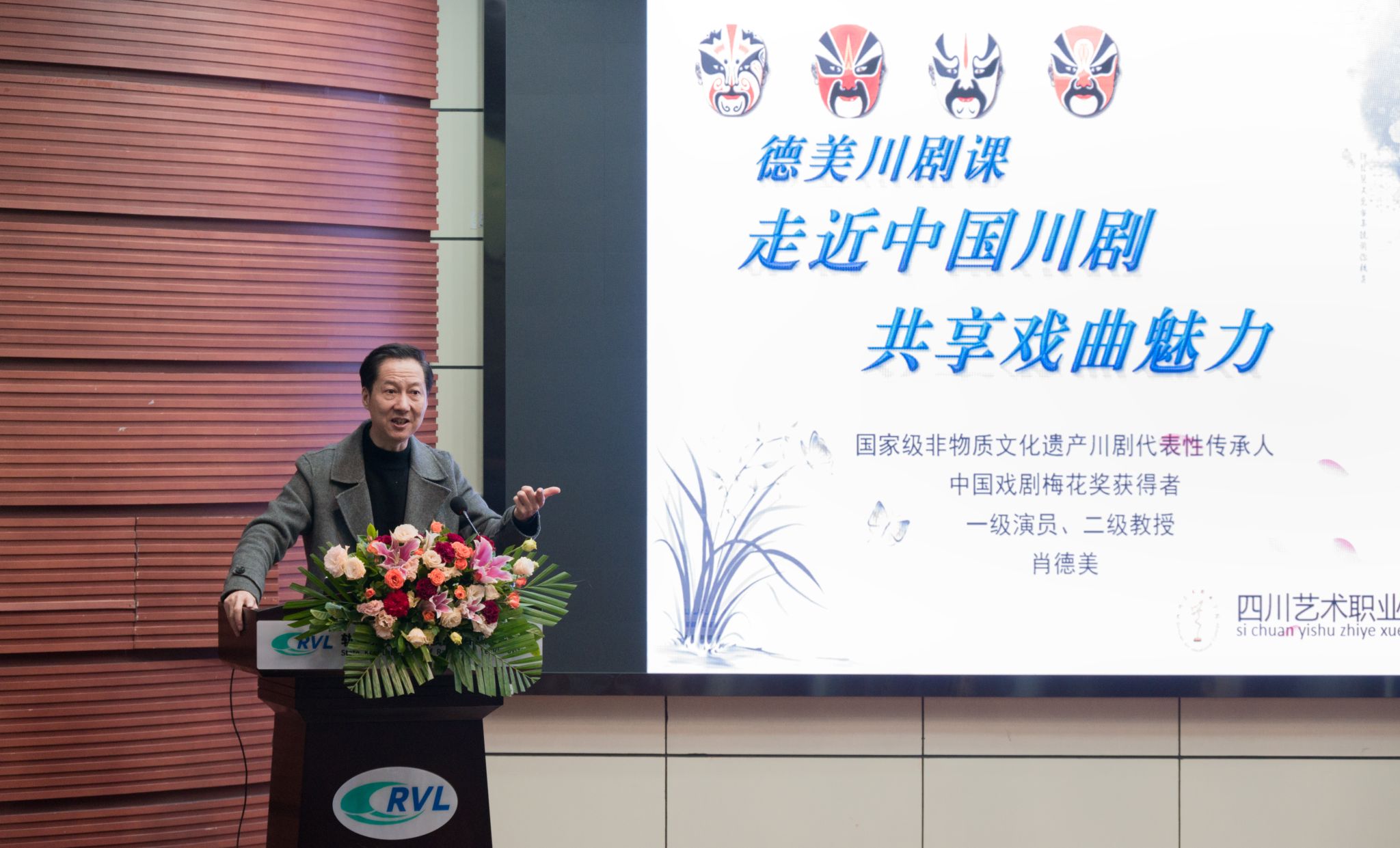 当肖教授的学生身着戏服登台现场演绎川剧“变脸”绝技时,活动氛围达到高潮,师生近距离感受传统文化的魅力与张力,阵阵掌声与赞叹声此起彼伏。