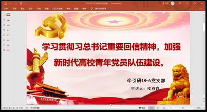 牵引研18-6班党支部学习贯彻“习近平总书记重要回信精神 加强新时代高校青年党员队伍建设”主题党日活动顺利开展