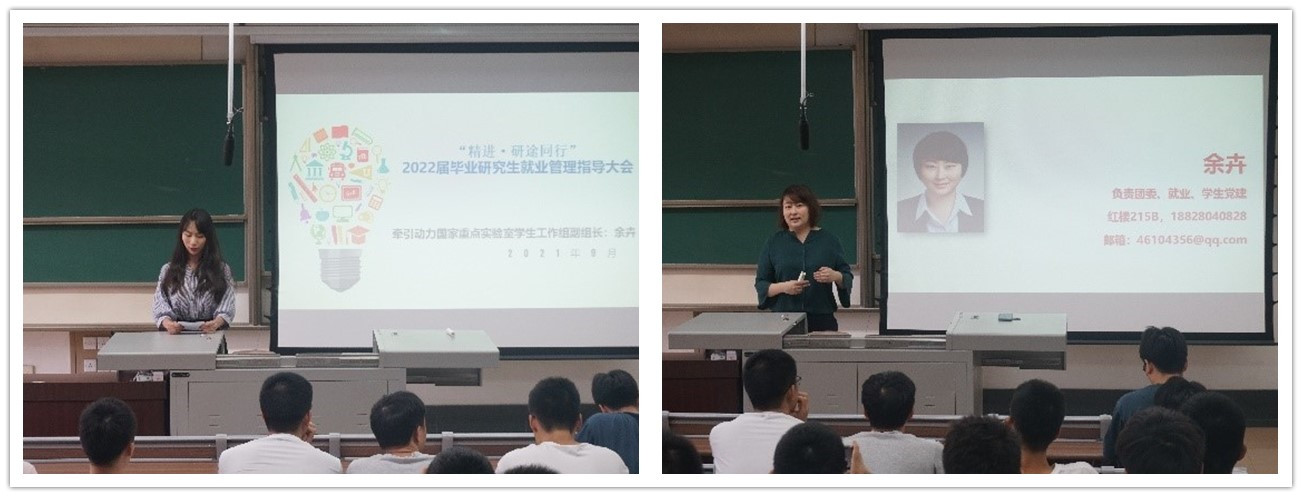 中级就业指导师、牵引动力国家重点实验室团委书记、学生工作组副组长余卉老师主讲,共有100余名毕业生到现场参加了活动。同时,线上还有160余名毕业生参加了线上指导。