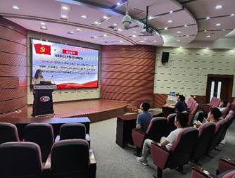 随后,何霞同志便主持开展了以“马克思主义中国化的光辉历程和宝贵经验”为主题的汇报演讲。她首先介绍了马克思主义中国化的理论,带领大家重温了毛泽东思想、中国特色社会主义理论体系、习近平新时代中国特色社会主义思想,回顾了马克思主义理论中国化百年发展历程。
