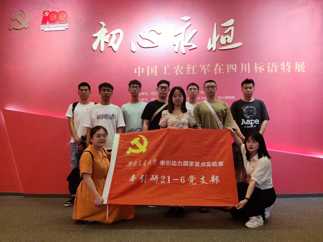 6月7日,为庆祝中国共产主义青年团建立100周年,,牵引动力国家重点实验室研21-6班党支部开展“忆初心·担使命”主题党日活动,参观学习了在四川省博物馆举办的“初心永恒——中国工农红军四川标语特展”,重温中国共产党和工农红军的理想信念,体悟前辈们的革命情怀,以学习的方式庆祝建团百年。
