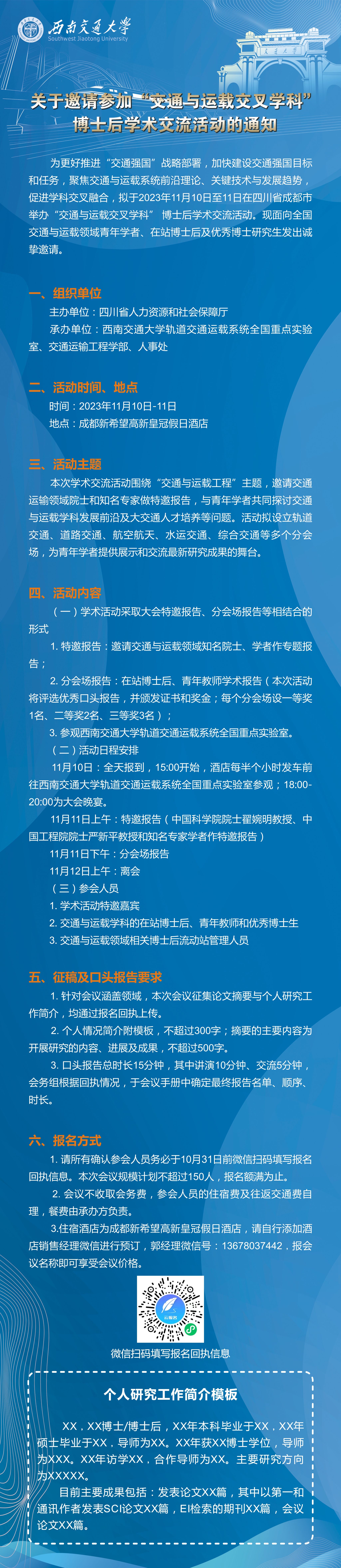 关于邀请参加“交通与运载交叉学科”博士后学术交流活动的通知