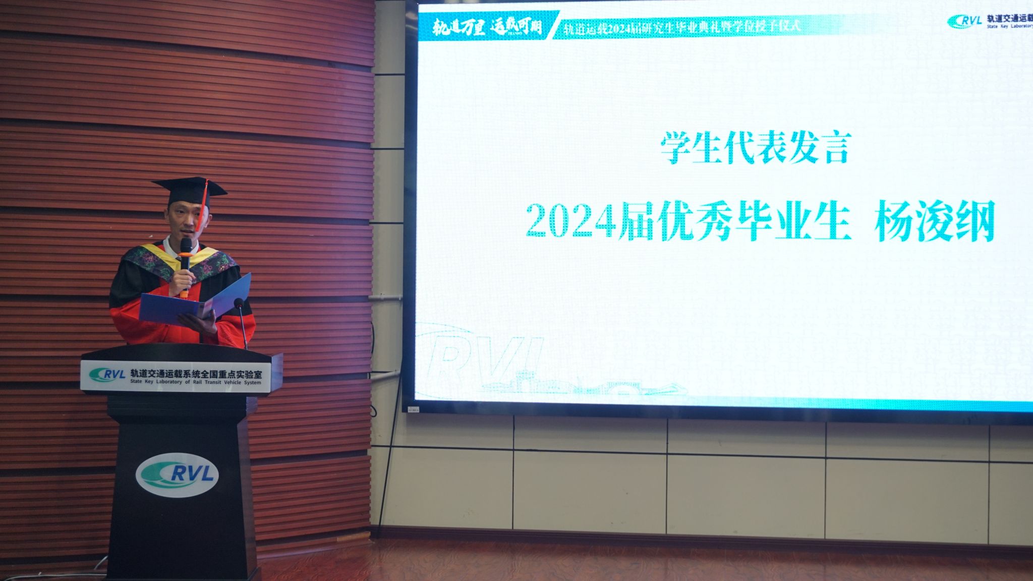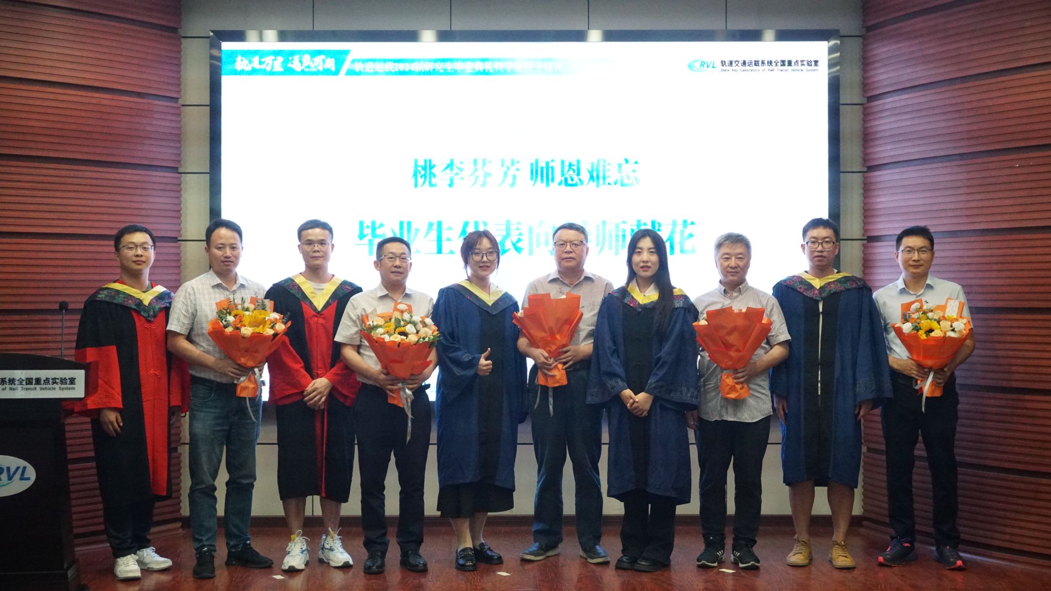 为进一步营造尊师重教的良好风尚,典礼还设立了毕业生代表向导师代表献花环节。5名优秀毕业生代表分别向机车车辆研究所所长刘建新、列车与线路研究所副所长赵春发、新型轨道交通技术研究所所长邓自刚、车辆工程与测控研究所王勇、轮轨关系与振动噪声研究所李伟等导师代表进行献花。
