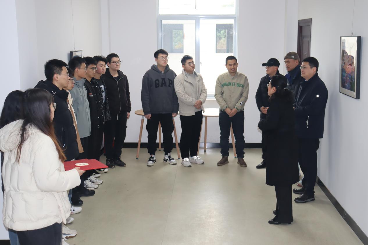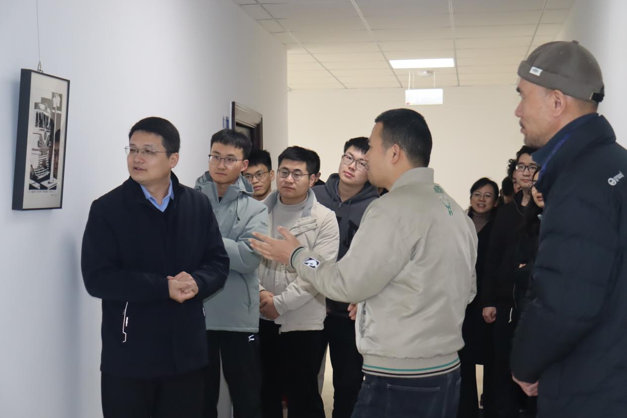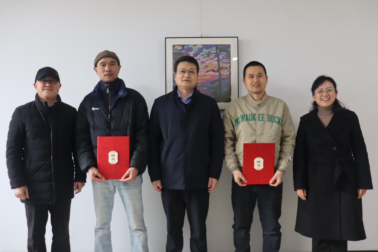 王霞副书记表示,实验室以北门小院环境优化升级为契机,借助学校美育精品示范培育项目的丰富成果,与建筑学院深度合作,精心打造工作间艺术长廊,集中展出了一批精美的艺术作品。在美化空间环境的同时,也让实验室师生在繁忙的科研工作之余沉浸式欣赏艺术作品、放松身心。为增强协同育人合力,常态化开展美育交流实践,实验室特聘请建筑学院熊路、罗乐两位老师为美育导师,庞烈鑫书记现场向两位美育导师颁发聘书并合影。