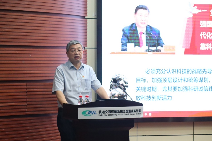 随后,王校长介绍了学校发展的新方位、新政策和新速度。他表示,在本学期中层干部大会上,校党委书记余敏明和校长闫学东分析了学校发展情况并进行了工作部署,学校已明确“聚焦中国式现代化,建设交通特色鲜明的高水平研究型一流大学”的发展目标。他还从学科、人才、科研、科技成果转化等方面重点介绍了学校近些年取得的成果,号召实验室全体教职工党员要勇于担当,积极投身于学校的建设发展中。