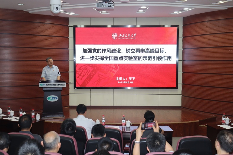 为深入贯彻中央八项规定精神学习教育,持续深化实验室作风建设,6月5日下午,校党委常委、副校长王平在A1楼218报告厅为实验室全体教职工党员讲授了《加强党的作风建设,树立再攀高峰目标,进一步发挥全国重点实验室的示范引领作用》专题党课,本次学习由实验室党委书记庞烈鑫主持。