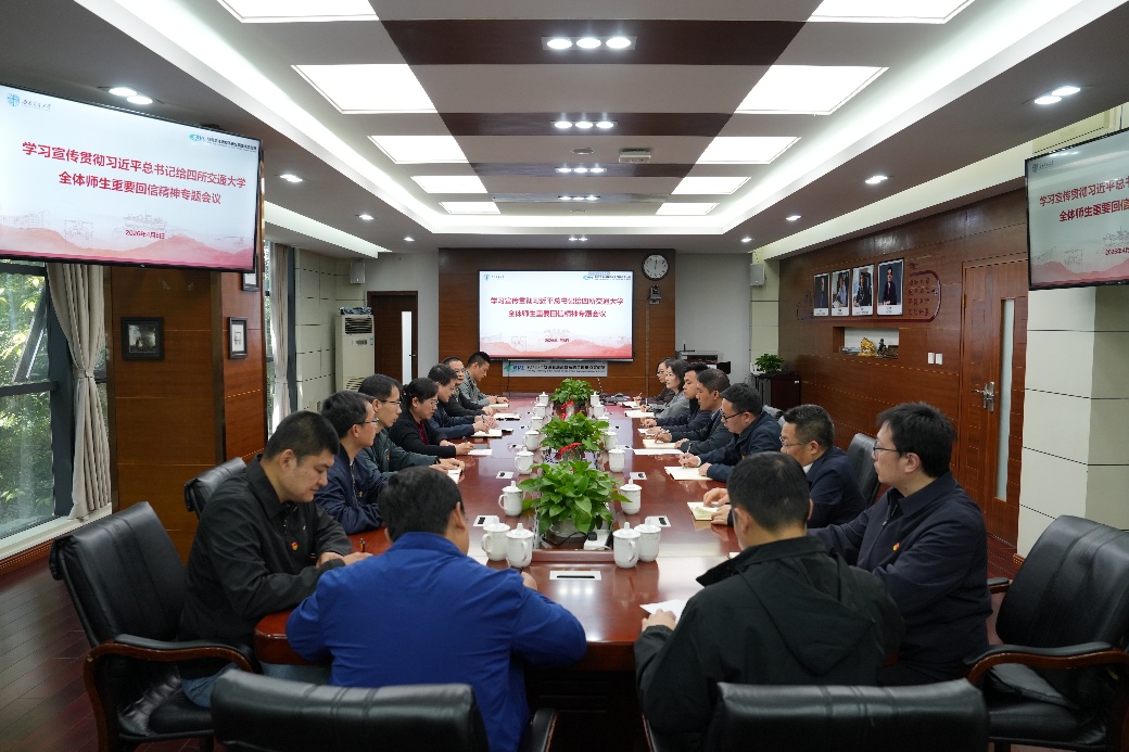 4 月 8 日下午,实验室召开党委(扩大)会议,专题学习宣传贯彻习近平总书记重要回信精神。实验室党委书记庞烈鑫主持会议。会议强调学习宣传贯彻习近平总书记重要回信精神,是实验室当前和今后一个时期的首要政治任务,要提高政治站位、统一思想、凝聚共识,将回信精神转化为推动实验室高质量发展的强大动力与实际行动;领导班子成员结合工作交流学习体会,一致表示将胸怀 “国之大者”,秉承 “求实学、务实业” 办学宗旨,传承弘扬西迁精神,聚焦国家轨道交通重大战略需求,紧盯关键核心技术,深化产学研用深度融合,破解 “卡脖子” 难题,以高水平科技自立自强支撑行业高质量发展,当好学校学科建设与科技创新的排头兵,争做国家轨道交通科技自立自强、人才自主培养的主力军。