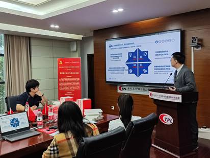 实验室党委书记庞烈鑫对活动进行了点评。庞书记指出,赵老师精彩的领学让人深受启发,各位同学的发言也强烈表达了践行科技自立自强的决心,本次主题党日活动也是一堂生动的思想政治教育课。庞书记强调,各位同学要结合国家、行业、学校还有实验室的发展,明确自身前进方向。最后庞书记希望全体研究生都能认真践行“志存高远、脚踏实地、坚忍不拔、开拓创新”的实验室精神,在未来科研道路上瞄准目标,坚定前行。