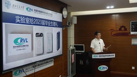 紧接着,庞烈鑫书记代表实验室全体师生向2023届毕业生表示诚挚的感谢,并向全体2023届毕业生赠送了礼物——带有实验室新标识和新名字的磁吸无线快充充电宝。庞书记强调,这份礼物一是寓意着同学们也要像充电宝一样,不断充实自己,不要抛弃了自我学习和自我约束的能力;二是希望毕业生们不论走到哪里,都不要忘记自己的轨道运载标签,要自我驱动,继续向前,做好示范。庞书记的发言淳朴又富有内涵,饱含着实验室党委对毕业生无微不至的关爱以及殷切的希望。