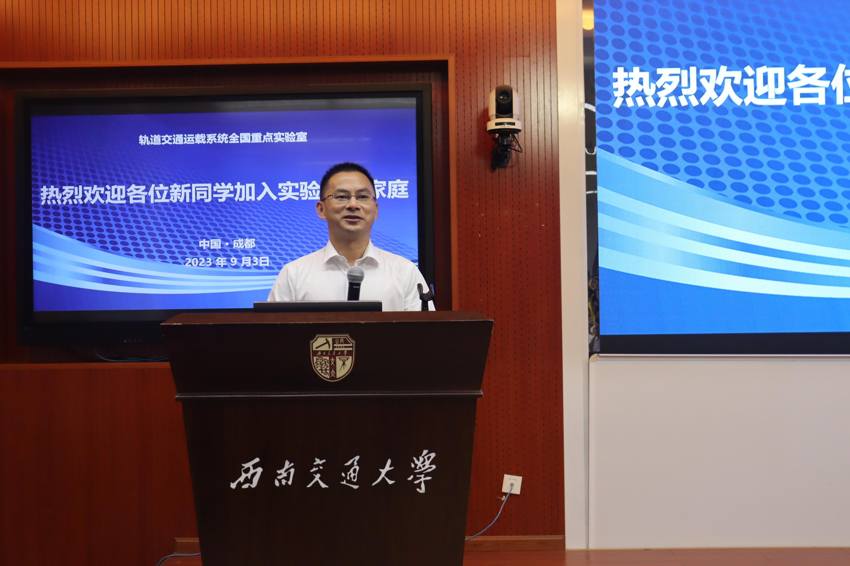 接着,实验室主任王开云介绍了实验室:“应铁路而生、因铁路而兴、凭铁路而强”的三十年风雨历程。随后王开云分享了实验室在轨道交通领域所做出的贡献以及实验室在队伍建设和人才培养方面取得的丰硕成果。最后王开云希望2023级研究生能够加深对实验室的了解,增强集体荣誉感和自豪感,尽快融入研究生新生活,立足轮轨,勇于创新,为国家轨道交通领域的发展贡献自己的一份力量。