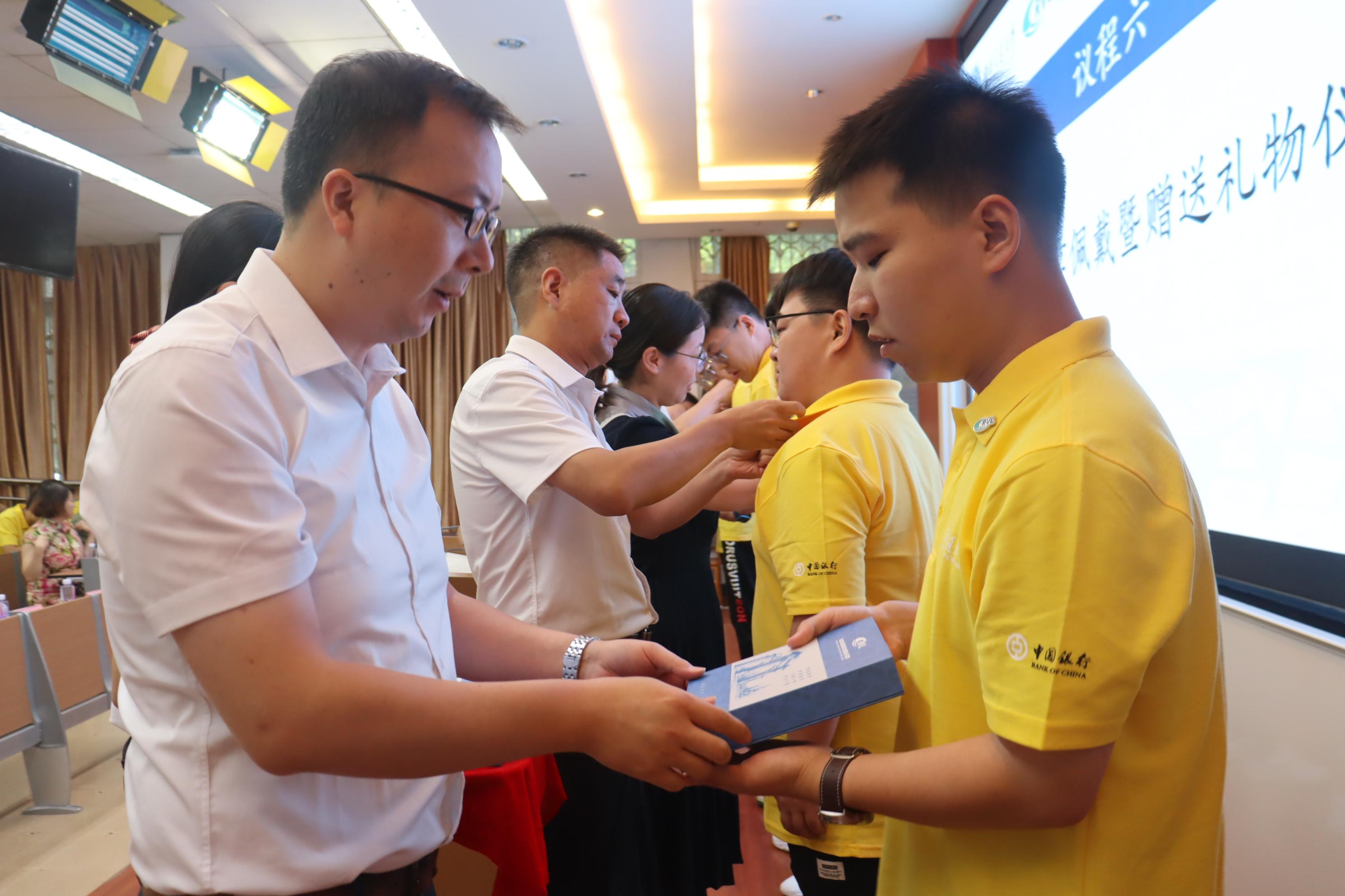 在随后的实验室徽章佩戴仪式暨新生礼物赠送仪式上,实验室党政班子成员、导师代表、各所办负责人、2023级新生班主任等为2023级新生代表们佩戴实验室徽章,并赠送印有实验室标志的签字笔、U盘、徽章组成的礼盒。