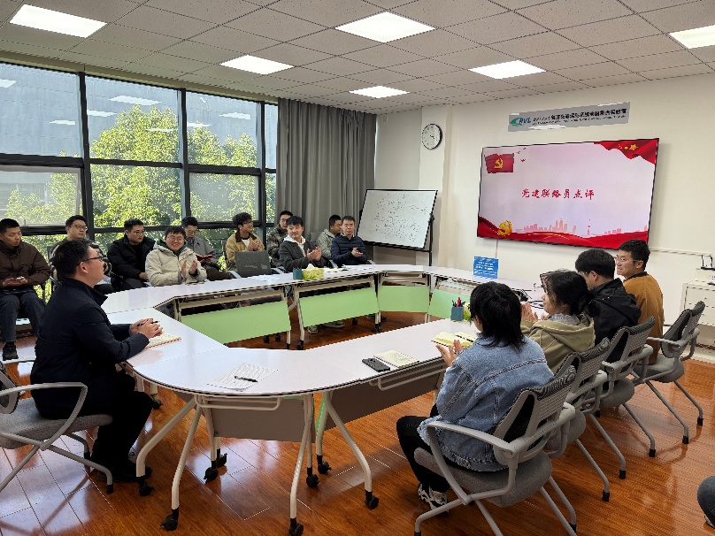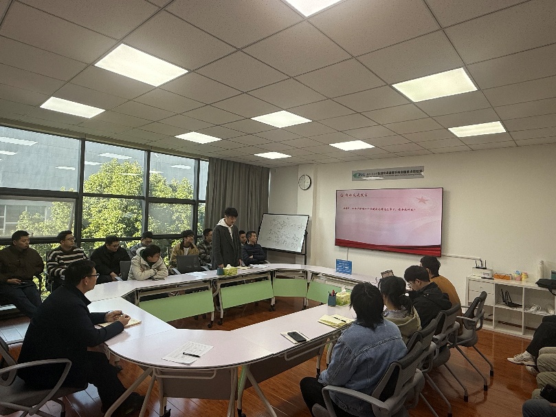 实验室党委委员凌亮对本次学习进行了点评和指导。他充分肯定了党员同志们的深入思考,认为大家的发言既有理论高度,又有实践温度,充分展现了新时代博士生党员的责任担当。凌亮分享了三点重要体会:一是教育强国是科技强国、人才强国的根本前提,科研工作必须紧密对接国家战略需求,勇于攻克“卡脖子”难题;二是立德树人是教育的根本任务,博士生党员要坚持以德为先、以诚为本,成为德才兼备的高层次人才;三是博士生党员要在实验室、课堂和社会中发挥示范引领作用,让科研成果真正惠及社会、服务教育事业。最后,凌亮勉励大家要学思践悟、知行合一,把学习思考转化为科研创新的实际行动,让“强国有我”的青春誓言在日常学习工作中落地生根、开花结果。