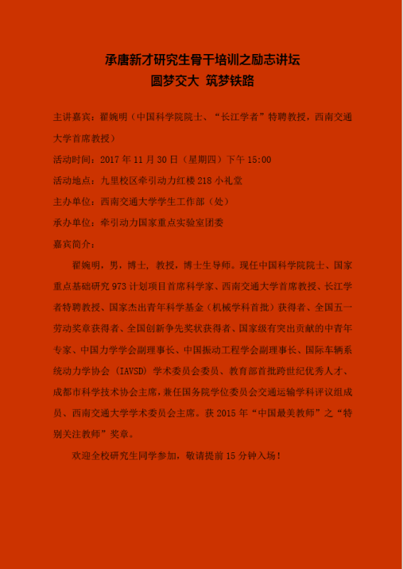 承唐新才研究生骨干培训之励志讲坛 圆梦交大 筑梦铁路