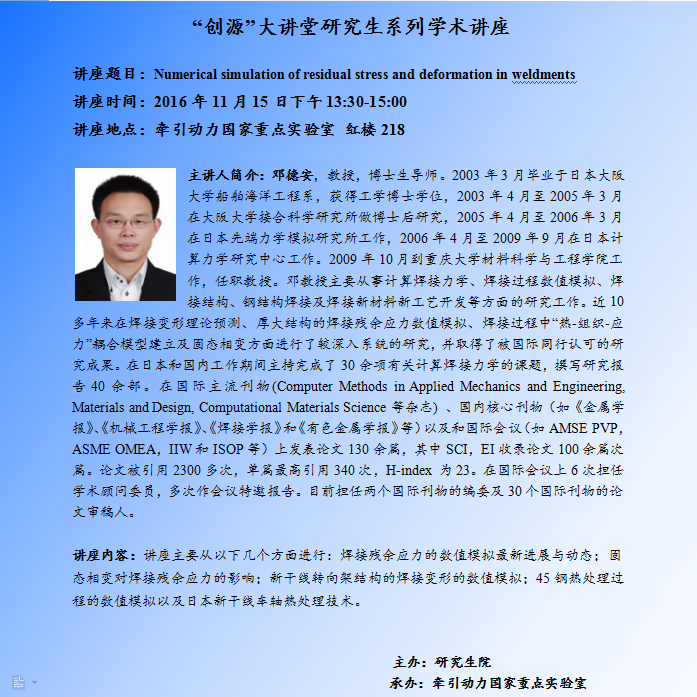 【学术讲座】Numerical simulation of residual stress and deformation in weldments