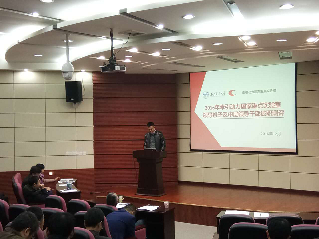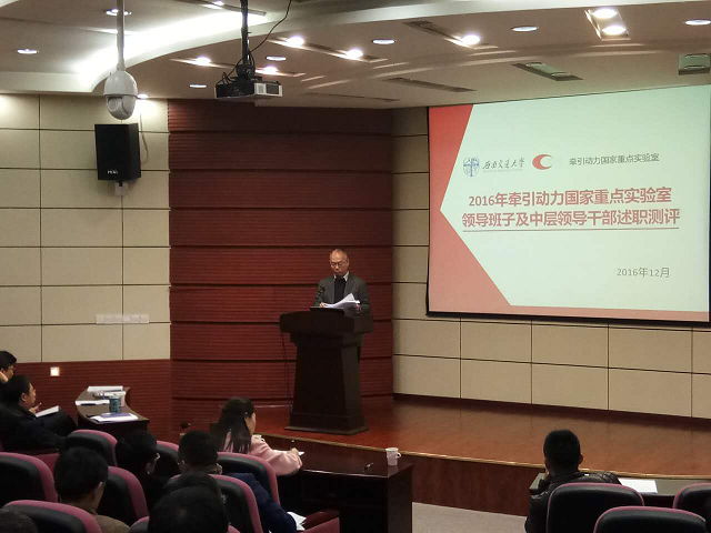 2016年12月22号下午,实验室召开2016年度领导班子及中层领导干部述职评测大会,全体实验室教职工到场,听取康国政代表实验室行政班子、董大伟代表实验室党委所做的年度述职汇报,班子成员逐一做个人年度工作报告。党委组织部干部科蒋维副科长到场监督指导测评全过程。