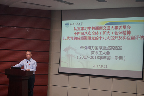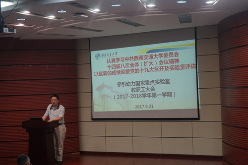 》的讲话全文。董大伟书记重点讲解了王顺洪书记关于人才工作、经济工作、干部建设及一流工作带动一流大学建设的四大板块。结合实验室的实际情况,对实验室人才建设工作、干部队伍管理等多方面的内容进行重点讲解,也对在座的老师们提出了更高的要求。随后,董大伟书记还带领全体老师们学习了校党委副书记晏启鹏同志题为《思想政治工作与师资干部队伍建设》的发言及其他几位党委常委的主题发言。董大伟书记传达了校党委副书记、校长徐飞同志布置的新学期十大方面的65项重点工作。最后董大伟书记布置了本学期教职工理论学习其他三个方面的专题学习内容,号召全体教职工加强政治理论学习,以实际行动迎接即将召开的党的十九大及2018年实验室评估。