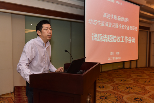 2017年9月25日,由翟婉明院士担任首席科学家的国家973计划项目“高速铁路基础结构动态性能演变及服役安全基础研究”课题结题验收会议在成都举行,项目所属的6个课题顺利通过结题验收,我实验室承担的2个课题获得全优的成绩。