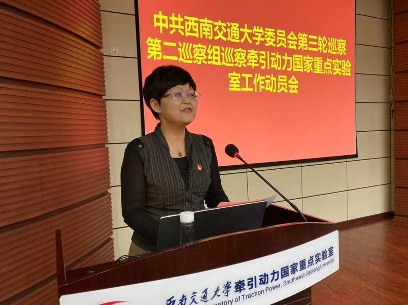 郑江代表学校党委第三轮巡察第二巡察组作动员讲话。她指出,做好这次巡察工作,一要认真学习领会,把握精神要义,把思想和行动统一到中央、教育部党组和学校党委对巡察工作的决策部署上来。这次巡察,充分体现了学校党委对牵引动力国家重点实验室工作的高度重视,是对牵引动力国家重点实验室党委推进党的建设、全面从严治党以及党风廉政建设的全面体检和有力促进。希望牵引动力国家重点实验室上下把这次巡察当作重要契机,树牢“四个意识”、坚定“四个自信”,坚决做到“两个维护”,深刻认识巡察工作的重要意义,加强政治建设,强化政治责任和政治担当,不断强化全面从严治党主体责任,进一步加强党的建设,充分发挥牵引动力国家重点实验室党委政治核心作用,推动牵引动力国家重点实验室工作再上新台阶。二要坚定政治巡察职能定位,突出政治建设,强化政治监督,牢牢把握巡察重点任务。本次巡察工作与“不忘初心、牢记使命”主题教育紧密结合,确保政治清明、政通人和;与“双一流”建设紧密结合,聚焦学校“双一流”建设,确保特色鲜明、事业长青;与巡视整改相结合,确保标本兼治、取得实效。巡察工作将牢牢把握“两个维护”,对标中央关于深化政治巡视、强化政治监督的“六个围绕,一个加强” “五个持续” “四个聚焦”的明确要求,深化政治巡察内涵,,按照教育部党组突出“三个重点”的要求,聚焦“双一流”建设,加强“十个紧盯”,为学校落实立德树人根本任务提供坚强的政治保证。三要依规依纪,确保工作高效有序推进。巡察组将严格按照巡察工作有关规定, 通过听取汇报、个别谈话、受理信访、抽查核实、向有关知情人询问情况、调阅资料、列席会议、测评及问卷、深入了解、专项检查及学校党委批准的其他方式开展工作。四是强化政治担当,坚决完成学校党委交给的巡察任务。完成好学校党委交给的这次巡察任务是实验室党委和巡察组共同的政治责任。巡察组将坚持稳中求进的工作总基调,紧紧依靠实验室党委开展工作,广泛听取各方面的意见,深入检查了解情况。实验室党政领导班子,要把接受巡察监督作为一项重要的政治任务,全力支持配合巡察组开展工作。