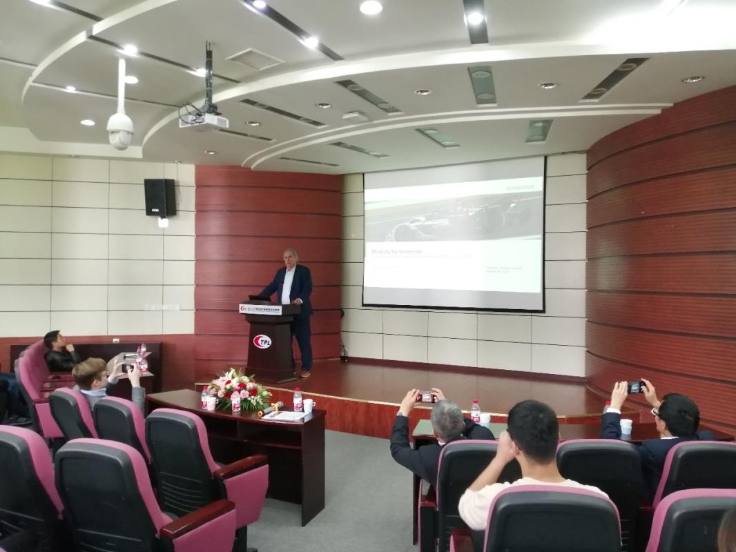 10月28日下午,我校客座教授、舍弗勒集团原副首席执行官兼首席技术官Peter Gutzmer博士到实验室进行交流。在218会议室给我校师生作了题为“驱动未来—轨道交通在城市、城际和洲际交通中的应用”的讲座。