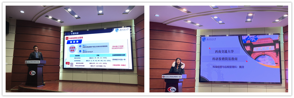 计财处魏溦科长针对科研报销政策变化、科研预算调整政策变化以及报销中的常见问题做了详细解读。从经费种类、报销确认单、票据粘贴、票据报销基本要求和资金支付基本要求等方面作了总体介绍,并对办公用品与低值易耗品、印刷费、版面费、国内差旅费、会议费、测试化验经费和合作费等日常报销中的重要事项进行了重点阐述。