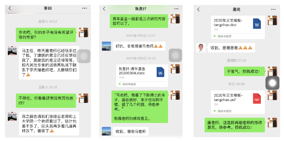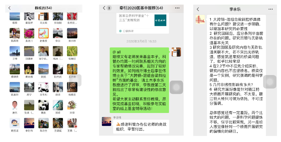 另一方面实验室采用“一对一”方式,为青年教师聘请同一学科的责任教授,指导青年教师开展基金选题与撰写。进入基金撰写的冲刺阶段后,实验室积极为每份申报书联系3名以上校内外评审经验丰富的专家,对申报书进行质量把关。目前已经对约20项申报书进行了线上辅导,收效甚好。