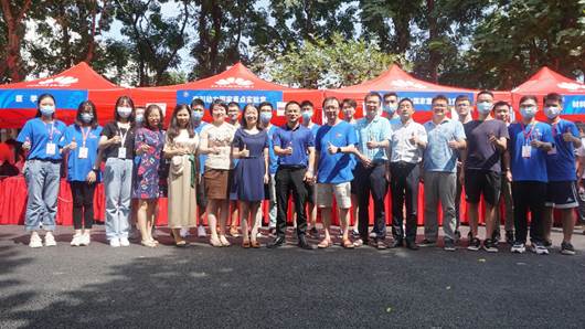 实验室老师与迎新点志愿者合影留念