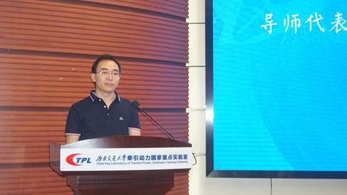 随后,实验室主任王开云从现有人员、总体定位与研究方向、物理空间与实验平台等方面详细地向同学们介绍了实验室。王主任阐述了实验室最近几年在轨道交通领域所做出的研究与贡献,以及实验室在队伍建设和人才培养方面取得的丰硕成果。最后王主任强调每位同学都应该为自己能够成为牵引学子而倍感自豪。鼓励大家立足轮轨、勇于创新,为国家轨道交通领域的发展贡献自己的一份力量。