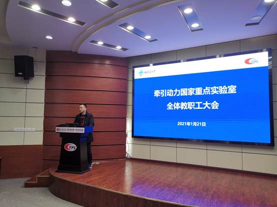 2021年1月21日下午两点半,牵引动力全体教职工大会在218小礼堂召开,实验室班子成员、全体教职工出席了本次大会。会议由实验室主任王开云主持。