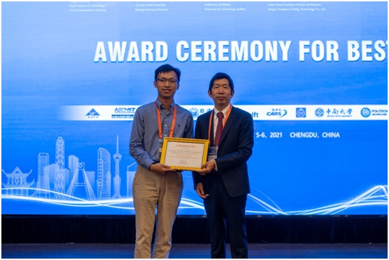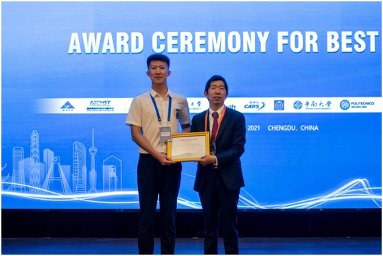 博士研究生曲帅和澳大利亚中央昆士兰大学博士研究生 Sundar Shrestha)。随后,翟婉明院士为本届会议最佳论文奖获奖代表何超博士、曲帅博士研究生现场颁发了荣誉证书。