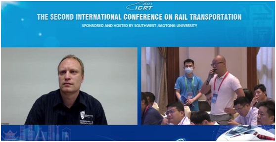 通过视频连线,现场参会代表与特邀嘉宾展开了热烈的讨论,参会代表们对第二届国际轨道交通学术会议能在全球COVID疫情的情况下成功举办,并取得如此成功表示认可和祝贺。