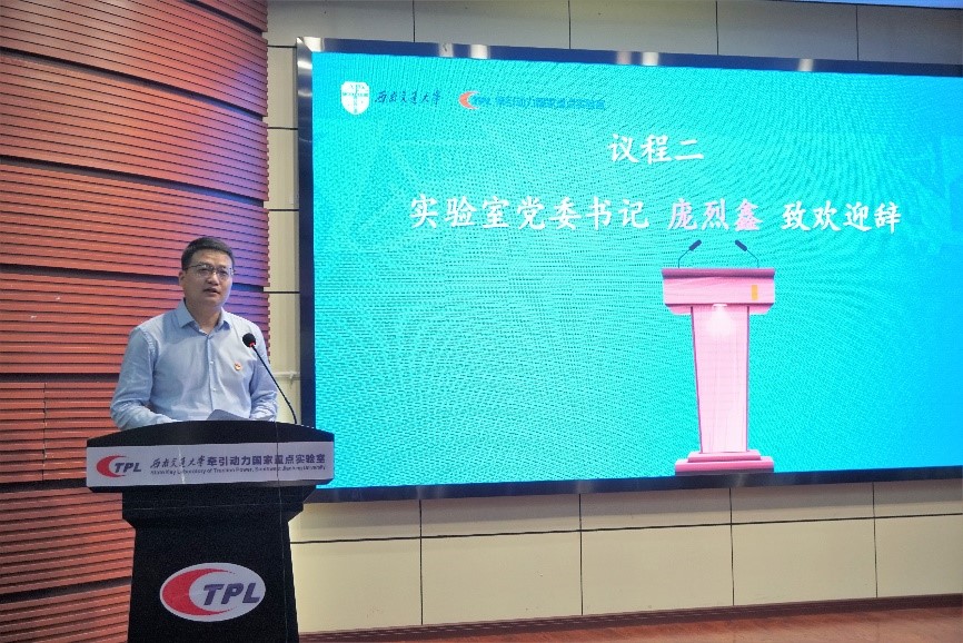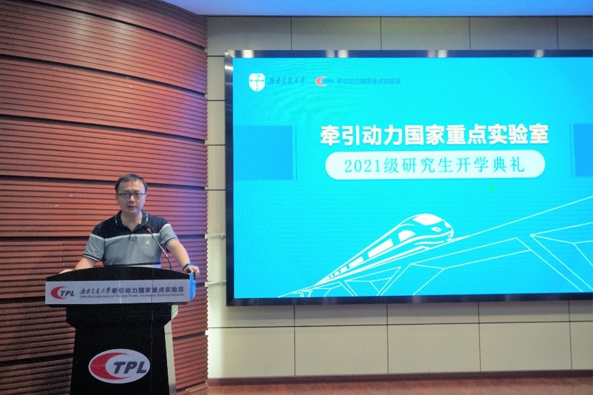 首先,典礼第一项由实验室党委书记庞烈鑫致欢迎辞,对2021级新生的到来表示热烈欢迎。庞书记分别介绍了实验室的学科设置、发展历史与科研成果,并向新生同学提出三点希望:希望同学们在这个百年未有之大变局,能牢记总书记嘱托、坚定理想信念、厚植家国情怀;珍惜光阴、不负韶华;在学校和牵引动力提供的最优平台上,如饥似渴的学习、一刻不停的提高;为报效祖国、建功立业奠定坚实的基础。