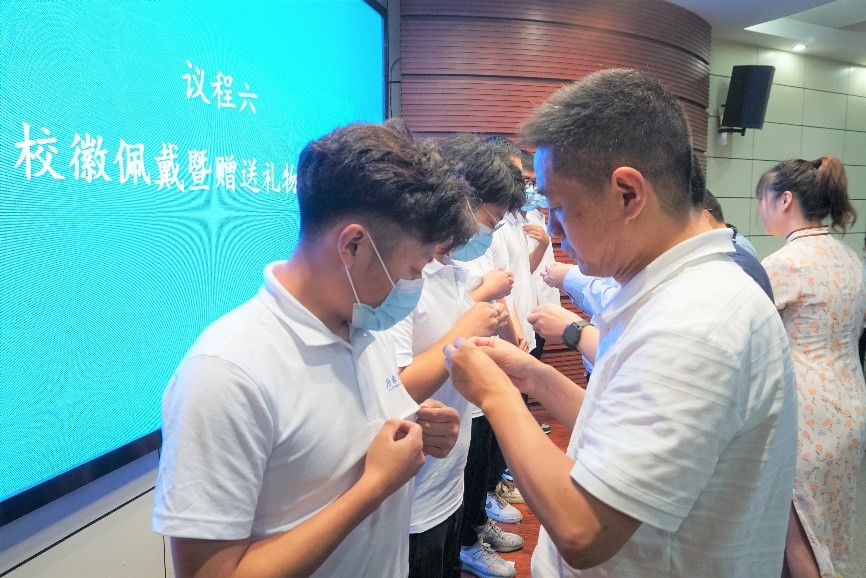 紧接着,实验室举行了为新生佩戴校徽暨赠送礼物仪式。实验室党政班子成员、导师代表、2021级新生班主任、辅导员老师们为2021级新生代表佩戴校徽,并赠送了印有学校牵引标志的减压魔方和一本《交通运输工程学报》轨道交通综述专刊。告诉同学们从今天开始便是一位交大人、牵引人,要时刻为自己的身份而自豪,希望大家尽快走入轨道交通领域的学术殿堂,同时不忘关注身心健康。