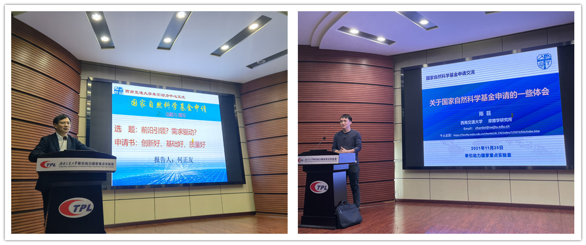 接着,何正友教授和陈磊研究员分别作了基金辅导报告。何正友教授结合自己和团队老师的基金申报经历,强调了基金选题的重要性,鼓励大家要面向国家重大需求和世界科技前沿开展研究。陈磊研究员结合自己基金申报成功与失败的案例,强调了凝练科学问题的重要性,强调基金申报要尽早准备。