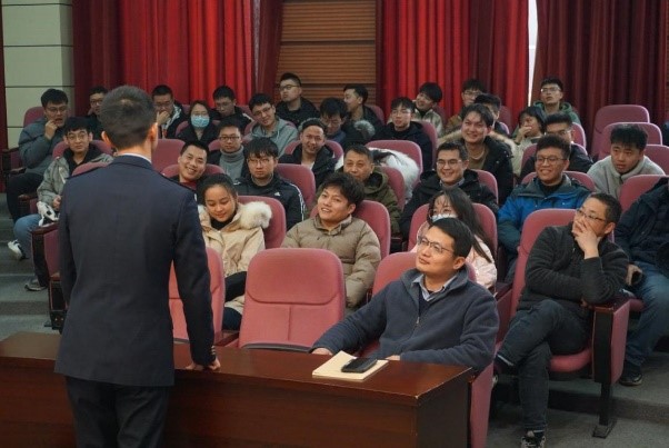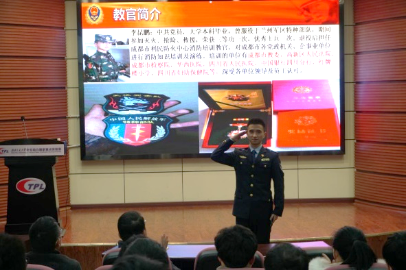 随后,李教官结合国内消防安全事故典型案例向大家开展了消防安全风险点研判、隐患排查、设施设备使用规范、现场应急逃生知识宣传教育,由火灾引起人员伤亡的真实案例引发了在场同学的深思。李教官强调,火灾不留情、预防要先行,火灾事故一次次警示我们事后的救援不及事故前的预防,防火的重要性远高于灭火。消防人员的救援仅仅是确保消防安全的最后一道防线,唯有提高大家的自防自救能力,才能从源头上减少火灾事故。为保障校园安全,大家在平时的生活中就应重视防火工作,不乱拉电线,不同时使用大功率电器,将火灾险情扼杀在摇篮之中。