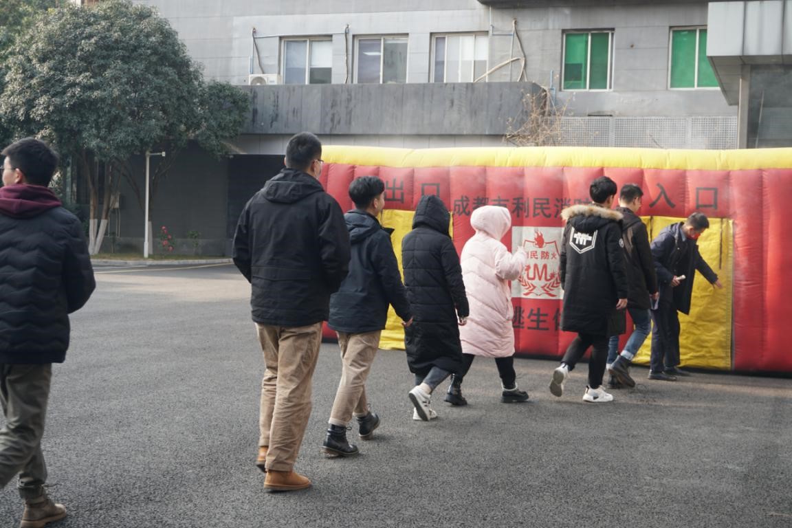 讲座结束后,大家在实验室办公楼下空地开展消防逃生疏散演练。现场模拟真实的火灾浓烟场景,参加演练的师生在工作人员的引导下,掩住口鼻,采取低姿势、安全有序、迅速地进入和撤离逃生体验舱,让大家亲身体会到火灾的危险性和浓烟的危害性。