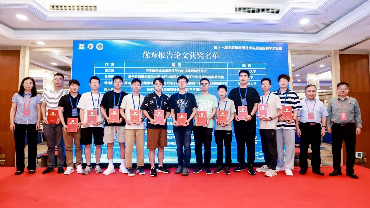 代表团录用论文19篇,口头报告14个,展出海报8篇。其中,赵春发研究员、邓自刚研究员、郑珺副教授分别作了主题报告“常导EMS磁浮交通多维非线性磁轨力高精度快速计算模型”、“超导钉扎磁浮及低真空管道交通研究进展”和“磁浮汽车创新探索”,主持了磁浮运载和磁浮新技术与新应用分会场。实验室博士生宁晓芳的论文《轨道不平顺对超导电动悬浮系统磁力的影响》和博士生王子涵的论文《高温超导磁悬浮垂向非线性阻尼研究》荣获优秀报告论文奖,硕士生万成麒的论文《控制系统前向通道时滞对EMS磁浮列车动力学性能的影响分析》和硕士生刘新的论文《径向与轴向电动轮力特性对比研究》荣获优秀海报论文奖。